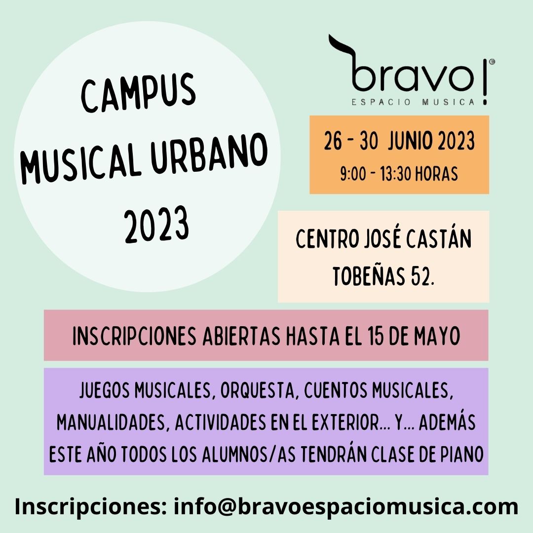 Del 26 al 30 de Junio realizaremos nuestro CAMPUS MUSICAL URBANO